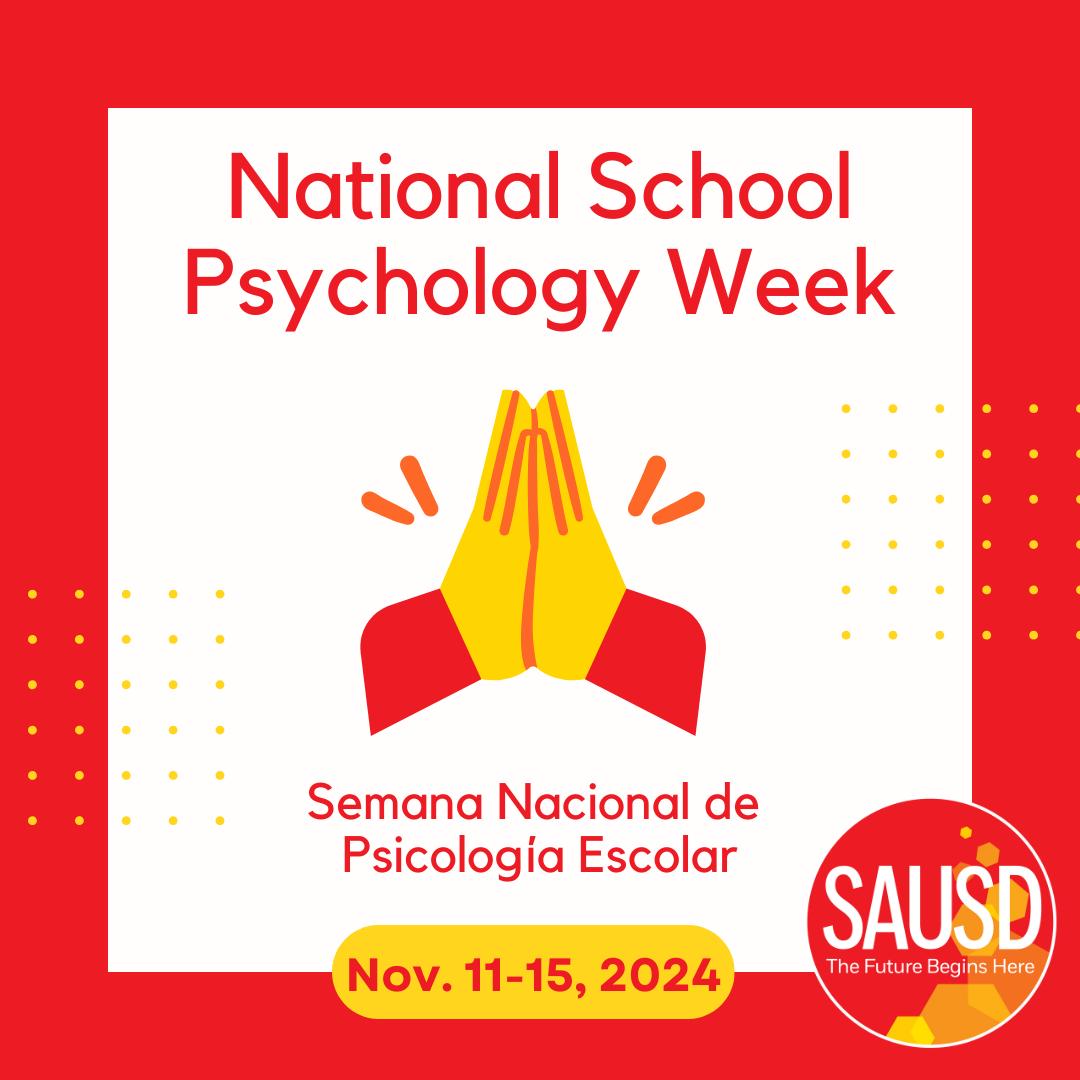 The SAUSD Board of Education has adopted a resolution proclaiming November 11-15, 2024, as National School Psychology Week. This week is dedicated to acknowledging the vital role our school psychologists play in supporting the well-being and academic success of students across the district. Join us in recognizing their dedication and unwavering commitment to uplifting our students every day. To learn more, read the full resolution here.