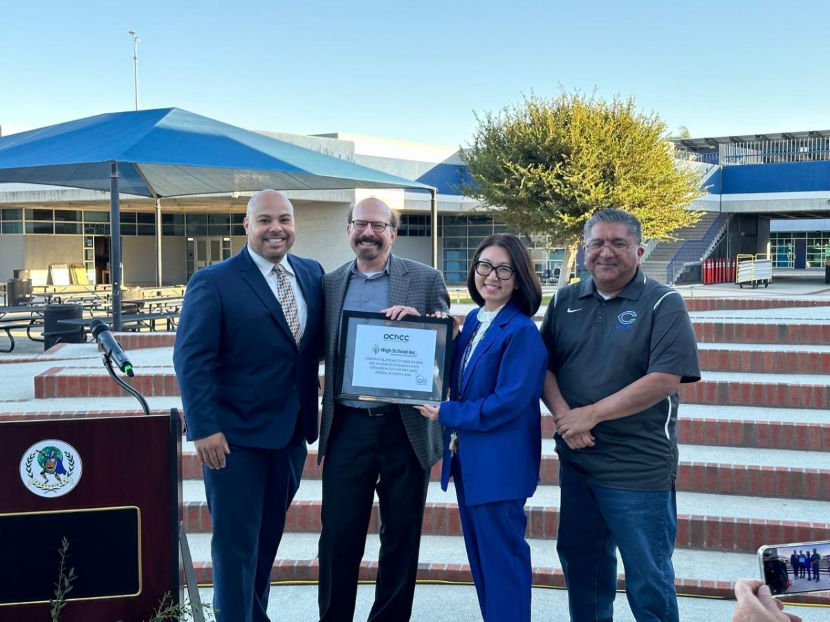 On Nov. 4, 2024, Century High School held an official ribbon-cutting ceremony to celebrate an exciting new partnership with the High School Inc. Academies Foundation. With SAUSD Board Vice President Dr. Alfonso Alvarez and members from the Santa Ana Chamber of Commerce in attendance, this collaboration aims to bring hands-on learning opportunities, mentorship, and career training directly to students. Supported by SAUSD, the Santa Ana Chamber of Commerce, and High School Inc., this initiative marks a significant milestone in creating robust pathways to success for our future leaders. Thank you to everyone who joined us to mark this transformative moment. Click here for photos.