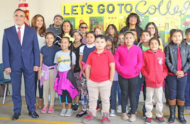 A new mural highlighting college and career paths was unveiled November 20, 2017 at Jefferson Elementary through the Walls that Unite project out of Cal State Fullerton, in which students and alumni spoke to Jefferson scholars about college and career preparation and helped them create a mural exploring those themes. Superintendent Dr. Stefanie Phillips was among the many supporters who attended the event, and recorded a new video about the significance of the artwork. "It starts with the mindset," she said in the video. "It starts with the thinking around 'What do I want to do? How do I get there?' To watch the video, click here.
