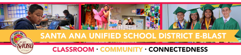The weekly e-blast is designed to keep the Santa Ana Unified School District Community informed of district and educational information, recognitions, opportunities, and resources. Please feel free to share with others