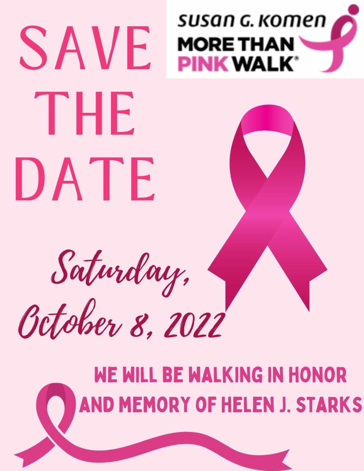 Please join our Second Baptist Church Team as we will participate in the Susan G. Komen More Than Pink Walk in the fight against breast cancer; Saturday, October 8th at LA Live. We are walking in honor and memory of Helen J. Starks. Please contact Jackie McMahon to join our team or make a donation, 213-399-2103. You can also click the link below to make a donation or join our team.