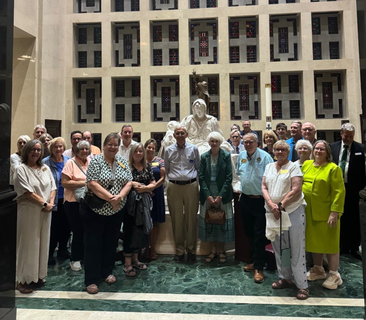 Friday evening began with a unique “Cathedral Crawl.” Serrans first visited the Cathedral Basilica of the Assumption in Covington, Kentucky, a Gothic gem often called “America’s Notre Dame” for its stunning stained glass and architecture inspired by the Paris cathedral. They then crossed the river to Cincinnati’s Cathedral Basilica of Saint Peter in Chains, a majestic Greek Revival landmark known for its towering columns and historic significance.