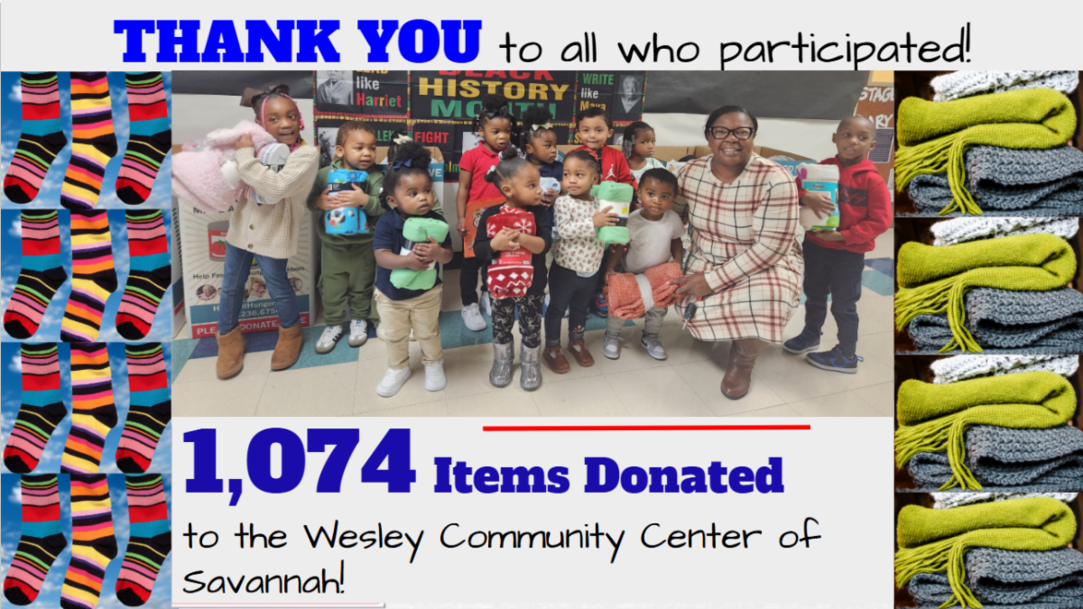 The January House Service Challenge Sock and Blanket Drive has ended. Together, SCA raised 1,074 items in donation to the Wesley Community Center of Savannah, which included 914 pairs of socks and 160 blankets!!! A big thank you to all for making SCA’s fundraiser a success!
