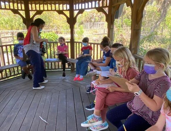From their observations, the second-grade students theorized which soil type would be most beneficial to support the greatest variety of life. In the Pick Preserve gazebo, students on the March 1 field trip wrote out their observations and discussed the importance of soil and habitats. SCCF Environmental Educator Richard Finkel led the excursion.