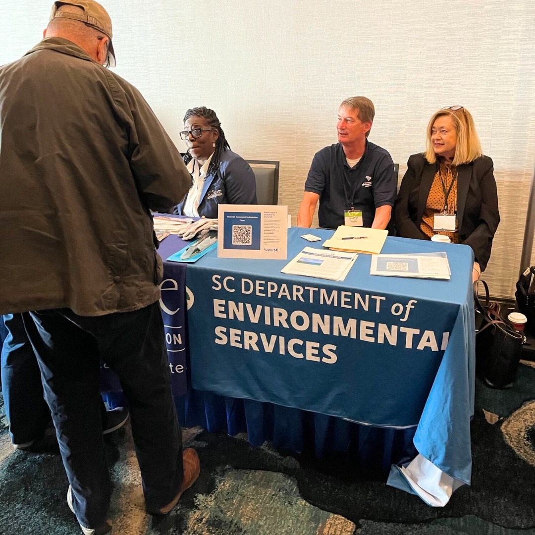 Myra Reece, SCDES Interim Director, and Rob Devlin, Assistant Chief with the Bureau of Water, attended the Farm and Forest Recovery Resource Day event in Myrtle Beach to help provide resources to farmers and foresters affected by recent storms, including information about storm debris management and test kits for the sampling of private drinking water well. Information was also provided to dam owners whose dams were impacted by the storm.