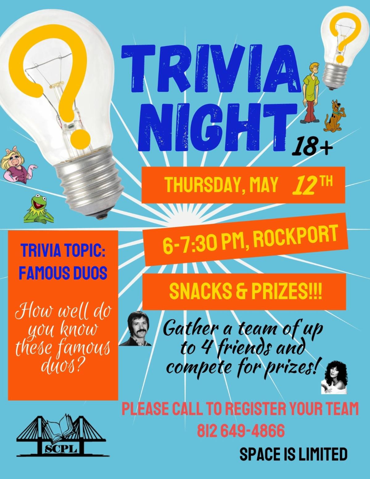 The Book Club at Rockport meets the first Friday of every month at 1:00 PM. You can join virtually or at the Main Library in Rockport. For more information please contact Erin by calling 812-649-4866.