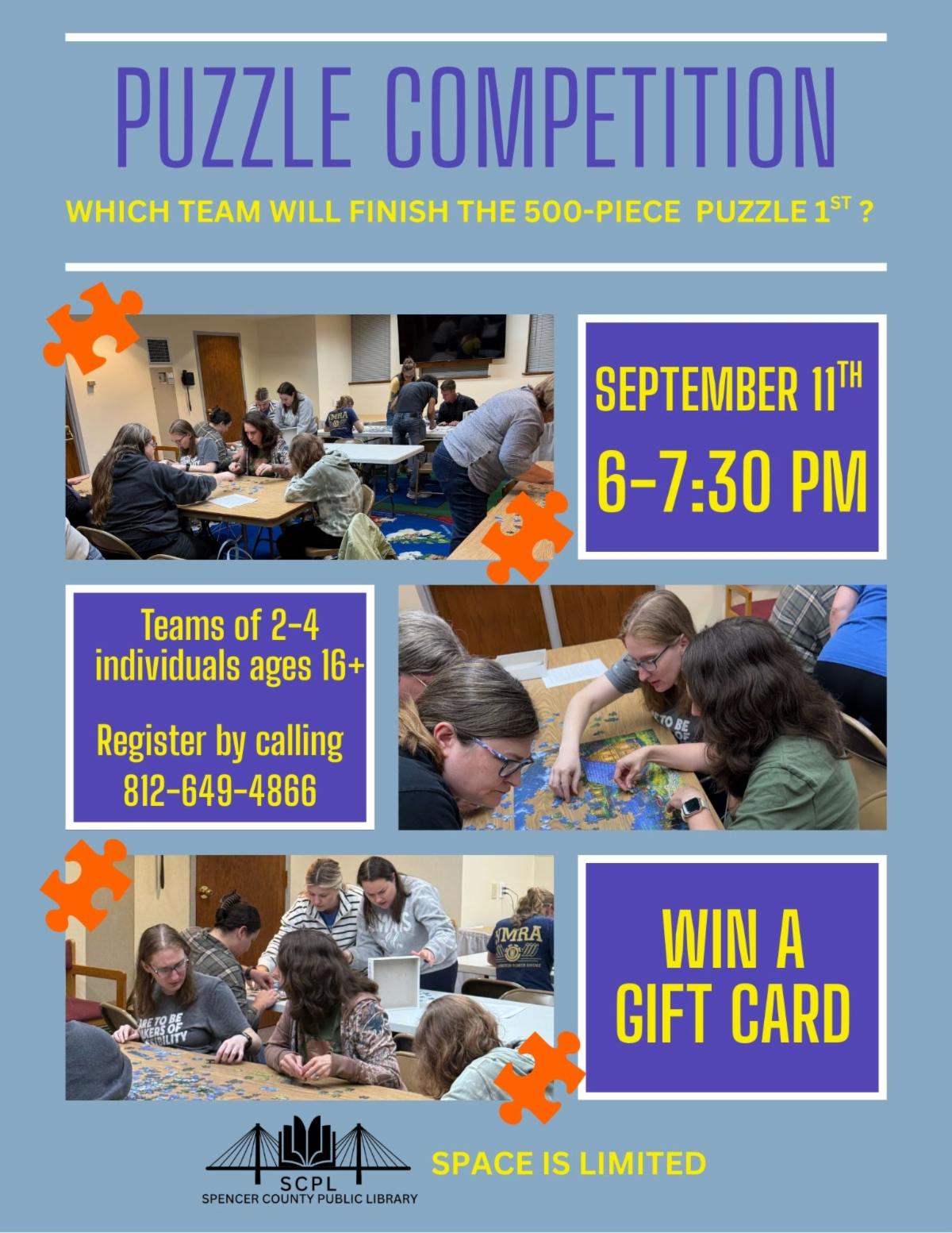 Each month SCPL will feature a new puzzle challenge. Download or pick up a September puzzle at any branch. Return your sheet by email or drop it off at any SCPL location. Each person who solves the puzzle correctly will be entered into a drawing for a $10 local gift card.