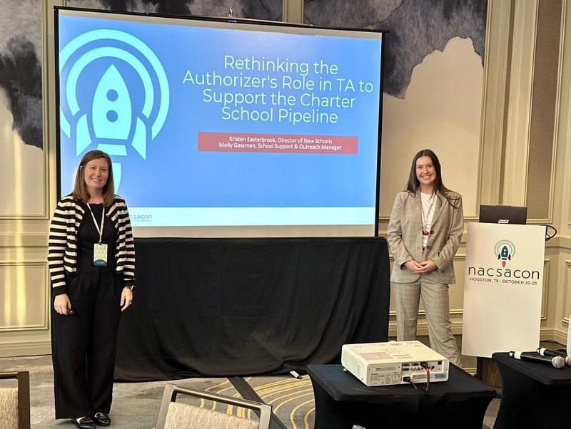 | | SCSC staff presented at the National Association for Charter School Authorizers' 2025 Leadership Conference (NACSACon 2025) on October 27-30, 2025, sharing the agency's innovative approaches to technical assistance and accountability oversight. NACSACon 2025 was held in Houston, Texas, to convene charter authorizers and technical assistance providers to focus on effective charter school policy and authorizing practices. | | Kristen Easterbrook, Director of New Schools, and Molly Gassman, School Support & Outreach Manager, led a session titled "Rethinking the Authorizer's Role in TA to Support the Charter School Pipeline." The session showcased how SCSC has leveraged Georgia’s CSP State Entity Grant to develop cohort-style technical assistance programs for new, replicating, and expanding charter schools. Attendees gained actionable strategies on galvanizing partners and utilizing federal funds to strengthen TA activities and increase impact for charter schools. | | | Cerrone Lockett, SCSC Chief Operating Officer, participated in a panel discussion for the session "Beyond the Checklist: Adaptive Authorizing to Support Schools in Need." Lockett shared how the SCSC has integrated early warning systems, responsive policies, and innovative intervention strategies that balance rigorous oversight with meaningful school support. | | |