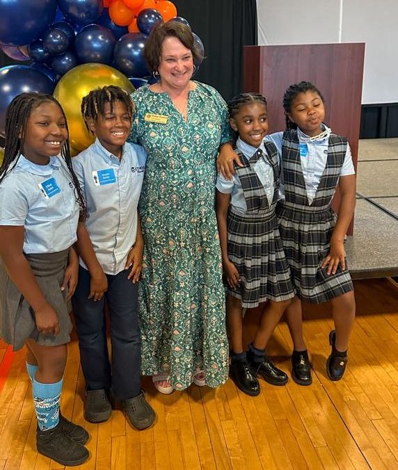 | SBOE Member Stockwell with students from Ethos Classical Charter School. | Melanie Stockwell, State Board of Education (SBOE) Member for Georgia’s Fifth Congressional District (GA05), hosted her first public hearing at Resurgence Hall, a state charter school in East Point. Speakers from around the district shared their experiences with public education and voiced the needs of their students and school communities. | | “There is no substitute for hearing directly from citizens and families,” said SBOE Member Stockwell. “Their voices guide the work we do.” | |
