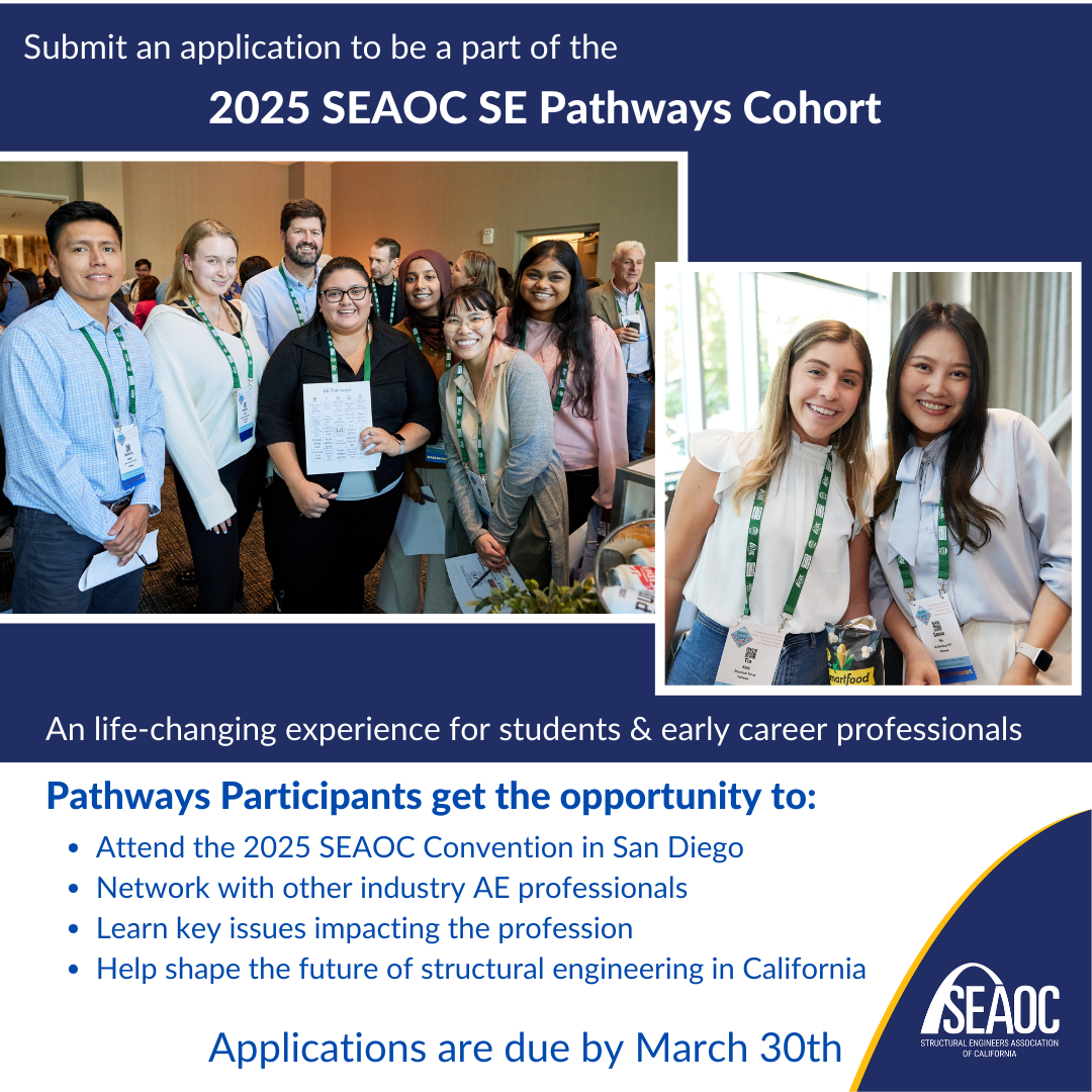 To learn more about the benefits of being part of the 2025 SE Pathways Cohort, visit the SEAOC Pathways Application Page and SE Pathways Website. Applications are due March 30th!