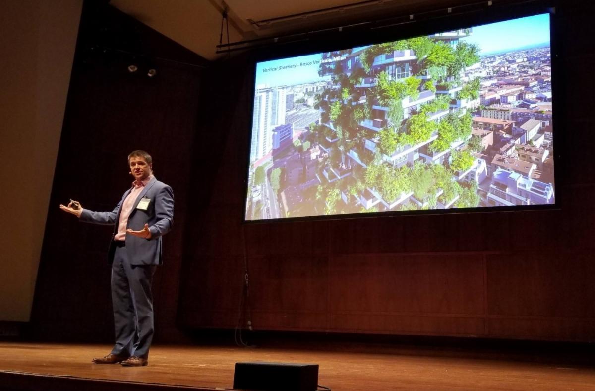 Antony Wood discussing one of his favorite tall buildings, the Bosco Verticale in Milan, Italy.
