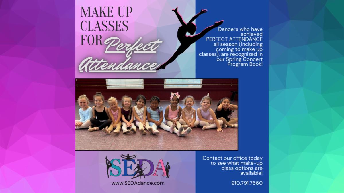 YOU READ CORRECTLY - MAKE UP EVERY CLASS YOU'VE MISSED AND RECEIVE PERFECT ATTENDANCE!