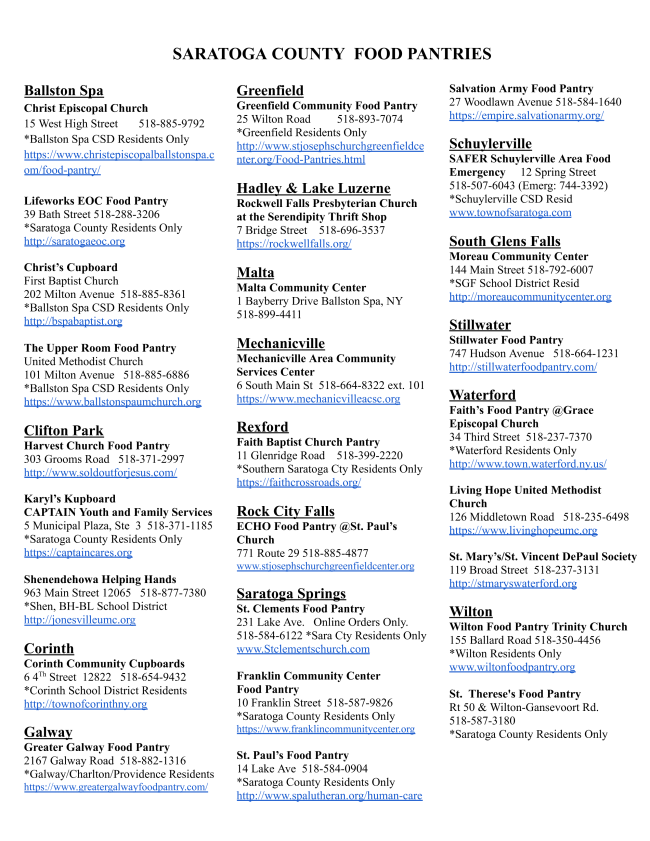 The need is great and inventory is dangerously low at many of the Saratoga County Food Pantries