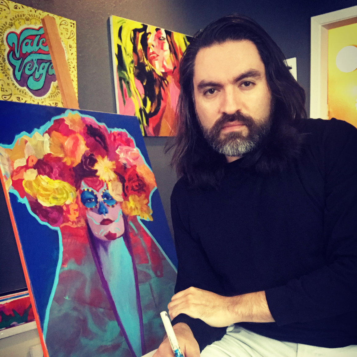 After serving eight years in the U.S. Air Force, Alejandro transitioned to the arts in 2011, opening the Vino Dipinte Art Gallery in San Angelo, Texas, where he taught nearly 11,000 students. His work has been featured in Western Art Collector and Visual Artists Magazine, with notable projects including murals for Paintbrush Alley and a Lowe's Centennial installation now at the company's North Carolina headquarters.