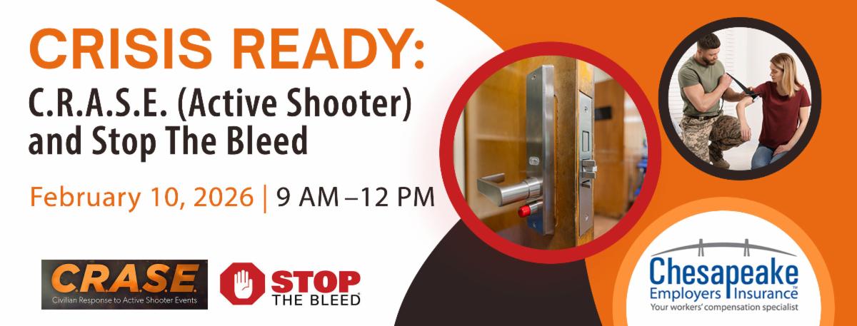 Chesapeake Employers Insurance is excited to offer a Crisis Ready training class designed to help you prepare for life-threatening emergencies. This unique program blends two essential components: