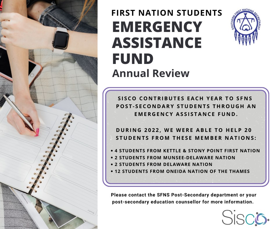 In 2022, SISCO was able to help support 20 Southern First Nations Secretariat - SFNS First Nations students, alongside RBC Royal Bank through this Emergency Assistance Fund so they can continue their post-secondary journeys. We are grateful to be able to continue this support throughout 2023!