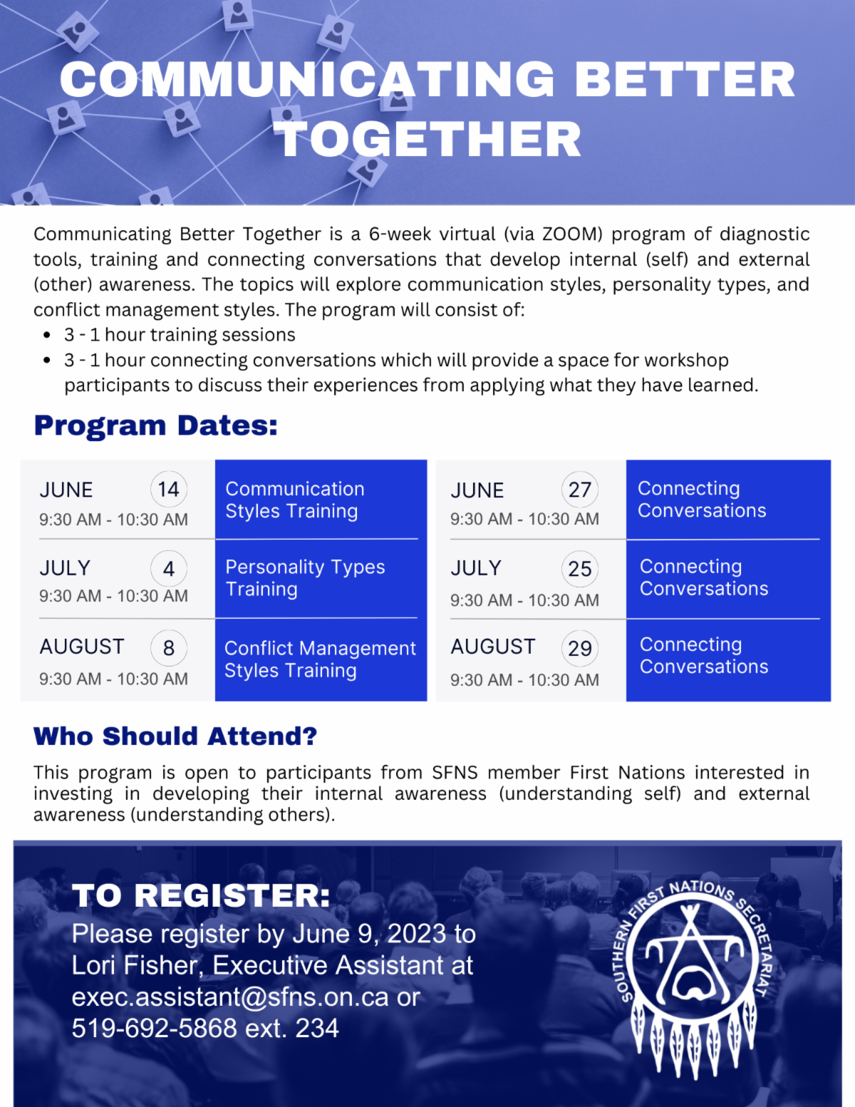 - Training - opportunities to increase capacity among First Nation staff.