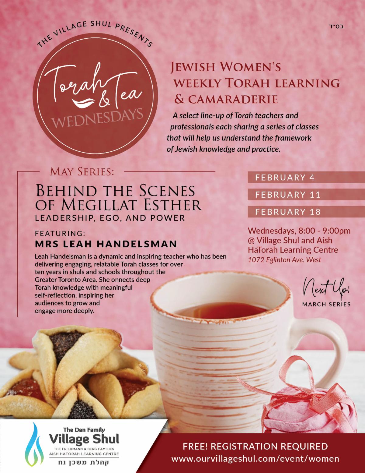 February 4, 11, 18: Torah & Tea with Leah Handlesman - Click HERE