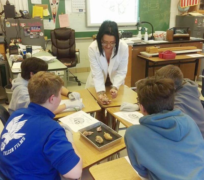 Pharmacology graduate students visited Franklin Middle School for Brain Awareness Day on March 7. The event promotes the mission of the DANA Foundation to educate the public about the importance and potential of brain research. The grad students -- Sarah Sottile (pictured), Jesse Britz, Asmita Dhukhwa, Sumana Ghosh, Srinivasa Kommajosyula, Vikrant Borse, Melissa McGovern and Yufang Yin -- did some dissection, instruction and serious science Q&A with the young learners.