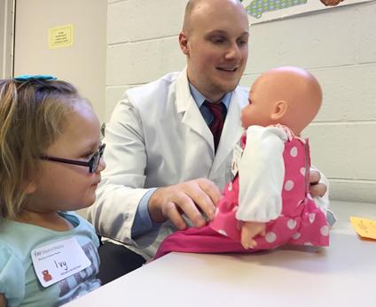 PA students "treated" approximately 100 doll patients, along with their toddler parents, at the 5th annual Doll Clinic, held at Head Start in Carbondale under the supervision of Molly Johnson. The toddlers learned about healthy eating, seat belt safety and the importance of physical activity.