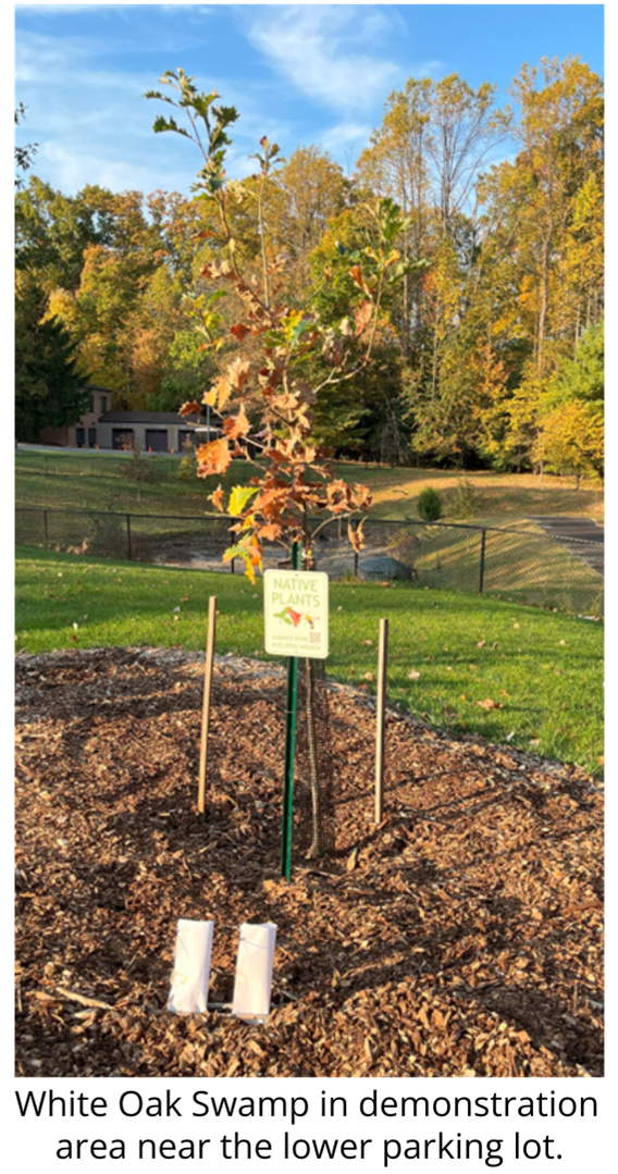 Last fall we covered the grass in two areas with cardboard and then covered the areas with mulch. In the sunny area we planted a native swamp white oak tree which thrives in full sun. The tree will be watered and cared for by parishioners. If you would like to be one of the caretakers, please email us at saintjn.cch@gmail.com.