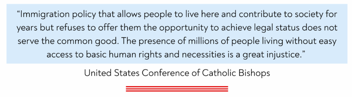 The truth is, as Catholics, we don’t fit into either side of what has become a divisive political issue. Our calling is one of compassion, dignity, and respect for life. In July, Archbishop Timothy Broglio, president of the USCCB, wrote about immigration, “The Catholic Church’s teaching to uphold human dignity and the common good compels us to redouble our efforts and offer concrete help to those who will be in greater need and continue to advocate for legislative efforts that will provide better possibilities in the future for those in need.”