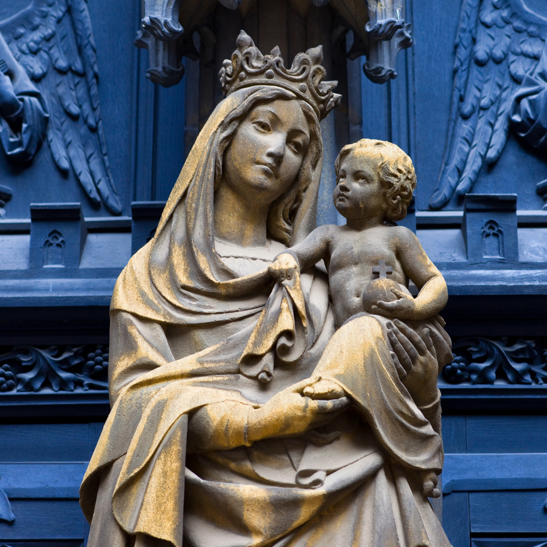 May is traditionally the month that American Catholics promote special devotion to Mary, the Holy Mother of Jesus. We focus on our rosaries, add new novenas, and recite the words of the Angelus. Flowers are left at side altars dedicated to the Virgin, and children participate in liturgies that culminate in the crowning of her statue as Queen of Heaven. We say an extra prayer when passing a representation of the Holy Mother, one that usually has similar features to this first image.