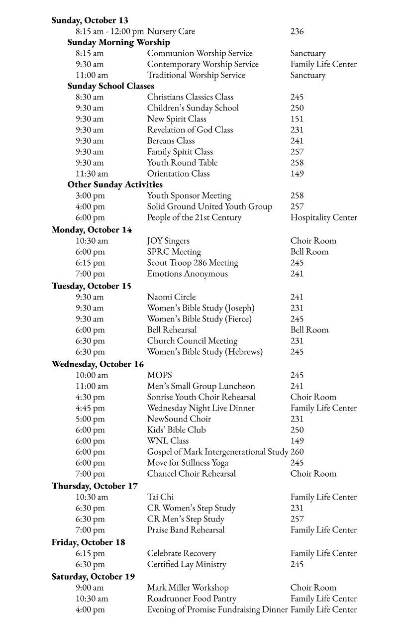 See what’s happening in October for missions at St. John’s! Come by the Hospitality Center to pick up your copy, or click