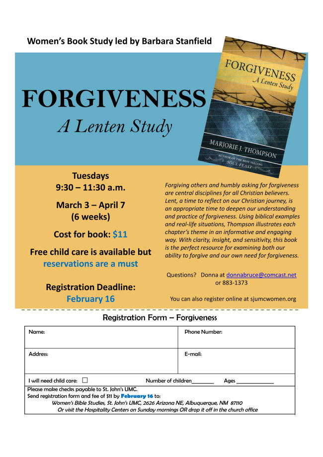 Once again, we will offer the opportunity for the congregation to purchase advanced fish fry dinner tickets as gifts for people you would like to invite. These tickets will be available at the Hospitality Centers beginning February 9. No reservations are needed for the fish fry dinners; you can purchase your ticket at the door. Ticket prices are $12 for adults and $6 per child (10 and under). Contact Wayne at jwshirleyabq@gmail.com.