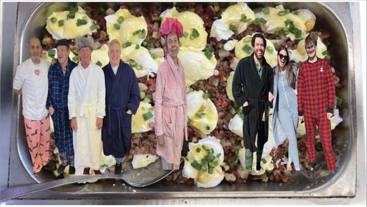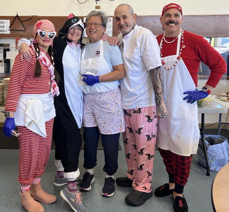 This year’s Valentine’s Day Pajama Brunch at SKIP was all about comfort—both in fashion and flavor! Guests and volunteers showed up in their coziest pajamas and bathrobes, creating a warm and festive atmosphere. Leading the way was Chef Raul, decked out in his dachshund PJs, who crafted an extravagantly delicious menu that had everyone coming back for seconds.