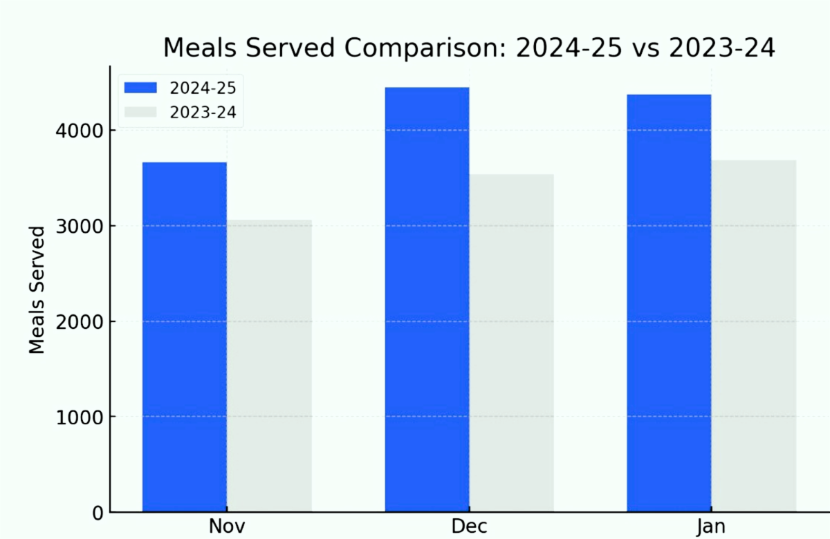 From November to January, SKIP has seen a significant increase in meals served compared to last year.