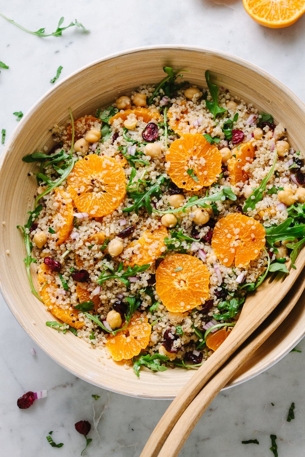 Assemble: Using the pot the quinoa was cooked in or a large mixing bowl, add the quinoa, chickpeas, oranges, cranberries, onion, arugula, mint, and parsley. Pour the dressing overtop and mix to combine. Season with more salt and pepper to taste.