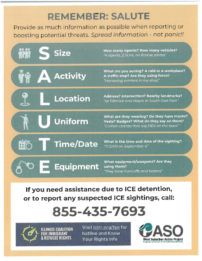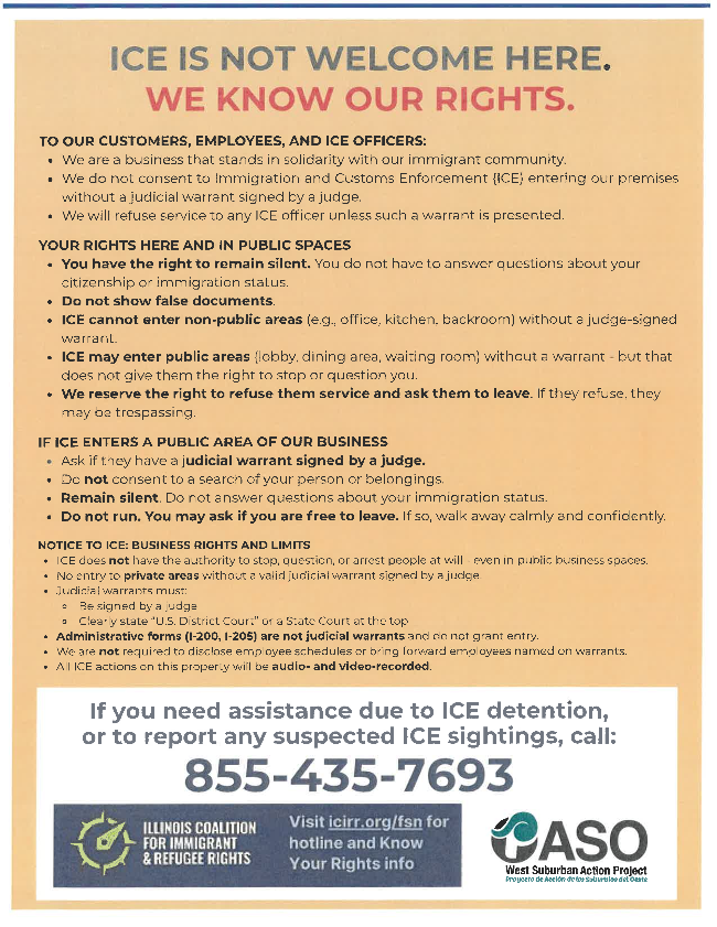 KNOW YOUR RIGHTS - In an immigration emergency or to report an ICE sighting, call the ICIRR Family Support Hotline: 1-855-HELP-MY-FAMILY