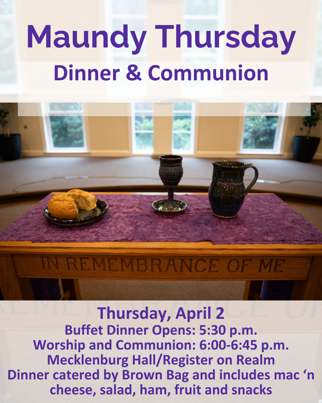 Maundy Thursday Dinner and Communion - Register by Sunday, March 29