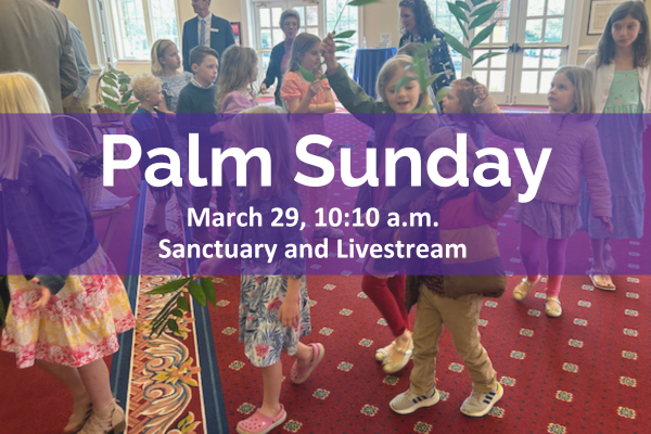We hope you'll join us for Palm Sunday at 10:10 a.m. in the sanctuary or via livestream. All are welcome! Children are invited to gather in the parlor at 10:00 a.m. to participate in our Palm Sunday processional!