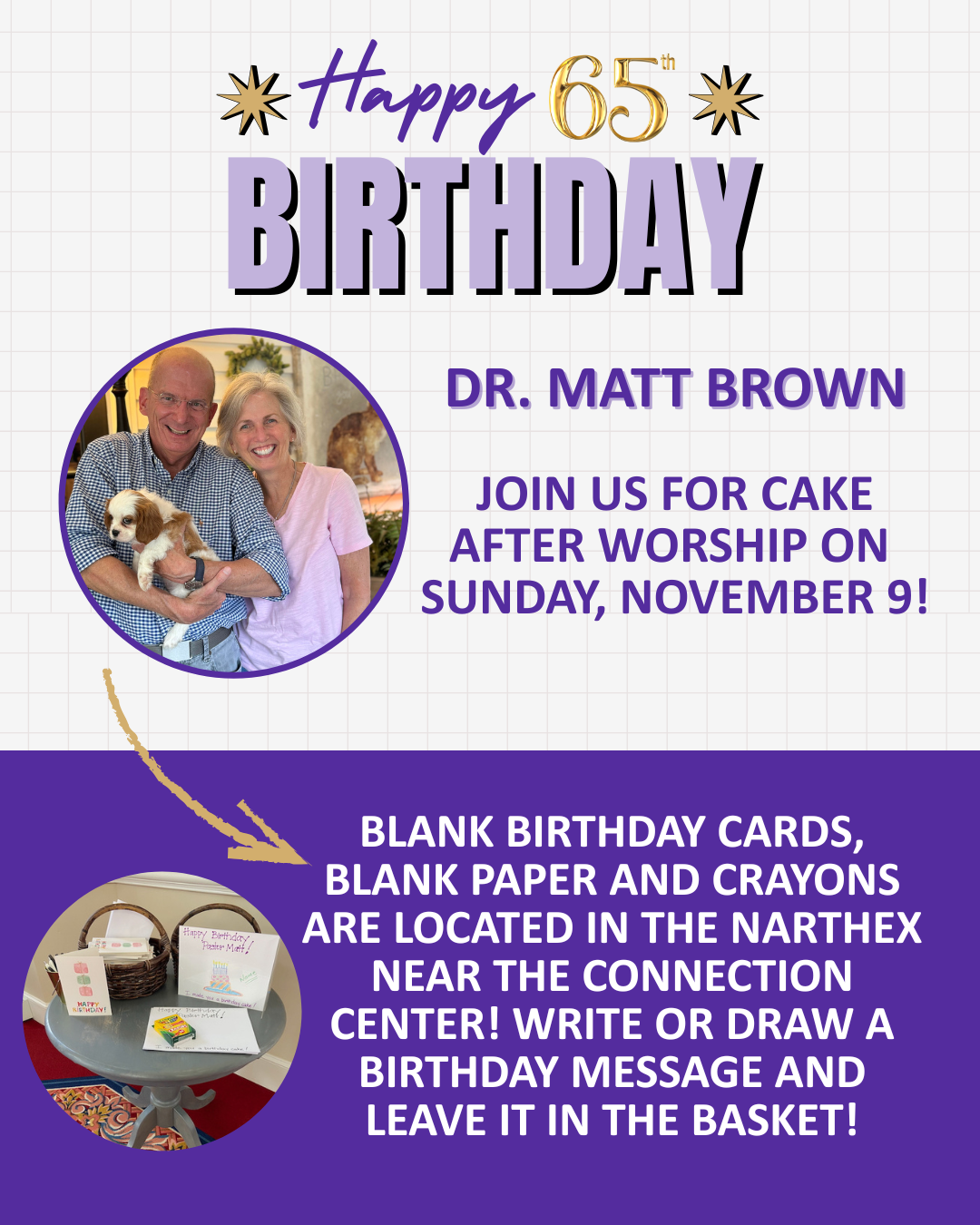| | Words of Love: A Healing Journey with the Ten Commandments, Sunday, November 2, 9:00-10:00 a.m., McQueen Room or Zoom - A ten-week study led by Melissa White and Rebecca Guzman. Reclaim the Ten Commandments as a path to healing and deeper love. All are welcome. | Register | Contact: Melissa White | | Handiworkers' Group, Tuesday, November 4, 10:00 a.m., Palmer Building, Room 104 - All levels of knitters, needlepointers, quilters, cross-stitchers and crocheters are invited. This group meets weekly to work on projects. Contact: Judy Jameson | | Conversations with Dr. Matt Brown, Wednesday, November 5, 9:30 a.m., McQueen Room or Zoom - Join us as we discuss the Scripture fo the coming week's sermon. Please note: the last Bible study with Matt will be Wednesday, November 12. All are welcome! | Contact Matt Brown for the Zoom ID# | | Making Space Mom's Group, Thursday, November 6, 7:30 p.m., Chapel 206 - Moms of all ages are invited to join us on the first and third Thursdays of every month for study, service and fellowship. | Contact: Allison Reeves | | Friday Morning Men's Group, Friday, November 7, 7:30-8:30 a.m., Chapel 206 - This group meets on the first and third Fridays of every month. They are beginning the book Imagine Heaven by John Burke. | Contact: Curt Ireland | | Hops and Vine Around Town, Saturday, November 8, 4:00-6:00 p.m., Rea Farms Harris Teeter - All are invited to join us for fellowship and fun! | Contact: Frank Graham | | A Caregiver's Journey, Tuesday, November 11, 1:00-2:30 p.m. McQueen Room - Finding meaning and purpose as you care for a loved one with Alzheimer’s or dementia. Contact: Kathy Garner | | Men's Evening Study Group, Tuesday, November 11, 7:30 p.m., Chapel 206 - This group meets on the second and fourth Tuesdays of every month. All are welcome. | Contact: Jon Myers | | Men's Breakfast Group, Thursday, November 13, 9:30 a.m., Big View Diner, 6637 Lancaster Hwy - This group meets on the second and fourth Thursdays each month to enjoy breakfast and conversation. Contact: Bob Tyler | | DR. MATT BROWN'S RETIREMENT CELEBRATION | | American Red Cross Blood Drive, Saturday, November 1, 8:00 a.m.-12:30 p.m., The Commons - Please bring your American Red Cross Donor Card or photo I.D. | Sign up | Volunteer at the Drive | Contact: Bill Ramsey | | Bread Donation and Delivery - Volunteers are needed every Friday morning to deliver bread donated by Panera to the Dilworth Soup Kitchen. | Sign up | | Bag Lunches for Roof Above - Roof Above provides 300 bag lunches each day to help feed those in need. SMPC is committed to providing 100 bag lunches each month. Our next collection is Saturday, November 22 at 9:30 a.m. in front of the Palmer Building. | Sign up | Contact: Julie Durham | | Center of Hope Desserts - On the second Sunday of every month we provide sweet treats for the women and children that temporarily call Center of Hope home. Our next dessert collection is Sunday, November 9. | Sign up | Contact: Terry Gaines | | Friends Empowering Haiti (formerly Friends of OFCB) is raising money to purchase food for the school in Bayonnais, Haiti. The school provides lunch each day for the 2,500 students who are enrolled in the four campuses, and it is often the only food the students receive that day. They have received a gift from a generous donor, which will match any individual donation up to a total of $83,333 between now and December 31, 2025. Donations can be made by check, mailed to Friends Empowering Haiti, P.O. Box 34563, Charlotte, NC 28234 or online. | Read more about the impact of sponsoring a student | More Info | Donate | Contact: Judy Nichols | | Nourish Up’s St. Giles Food Pantry, Fridays, 1:00-2:00 p.m. or 2:00-4:00 p.m., 2027 Emerywood Drive, Charlotte, NC 28210 – Lift and deliver boxes of food from Nourish Up’s St. Giles Food Pantry to cars every Friday from 1-2 p.m. They are also looking for help with client services every Friday from 2-4 p.m. The minimum age to volunteer is 14, and closed toed shoes are required. | Contact: Jane Royther | | Tutoring at Smithfield Elementary – If you are interested in learning more about this awesome service opportunity, please complete this form so that we can connect with you! Tutoring at Smithfield Elementary is a rewarding way to share your time and talents. | Contact: Lindsey Odom | | SMPC Ushers - We are looking for new members to join our Usher Team! Usher responsibilities include arriving 30 minutes prior to worship, handing out bulletins before worship, collecting the offering, guiding church members up to communion and cleaning up after worship. Ushers typically work one time a month or every other month. This is a great way for all generations to serve. | Contact: Nancy Parrish | | BAM! (Bible and Music) Kickoff, Sunday, November 2, 5:00-6:30 p.m., Meet in the Narthex, Kindergarten-5th Grade - During BAM!, children sing, creatively engage with Bible stories, and explore various instruments in peer age groups. Please register on Realm so we order enough pizza! | Register | Contact: Rebecca Guzman | | Adults Needed in Children's Worship, During 10:10 a.m. Worship, Sundays - Help as we welcome visitors and assist our youngest members! Just sign up and plan to meet us at the back of the sanctuary as we exit. You do not need to prepare anything. We love adults of all ages. Younger youth are always welcome to help, but we need additional adult to sign up each week. | Sign Up | Contact: Rebecca Guzman | | Youth Volunteers in Children's Worship - To ensure everyone has a chance to serve, please sign up in advance. Limit: 4 youth volunteers per week (unless there’s a special project). | Sign Up | Contact: Rebecca Guzman | | BYG (Big Youth Group), Sunday, November 2, 5:00-6:30 p.m., Mecklenburg Hall, Middle and High Schoolers - BYG provides an opportunity for youth to grow in faith and love through bible study, small group time, good food, fun games, and amazing company. Please bring canned goods for our 
