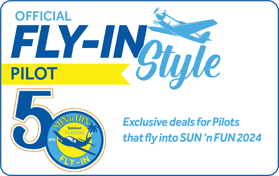 Who doesn't like a deal? Fly-in and sign up for the Fly-In Style Pilot Program and spend your week at SUN n FUN getting deals, and special swag exclusive just for our fly-in community of Pilots! | |