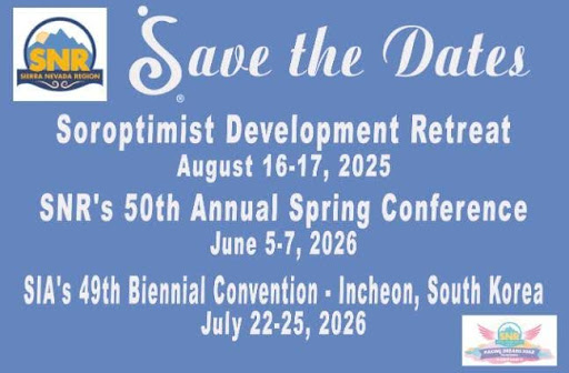 It's that time of year again when dues are due! Soroptimist International of the Americas and Sierra Nevada Region dues are due July 1. Please have them in to SIA and SNR no later than July 31 to maintain good standing with the federation and region.