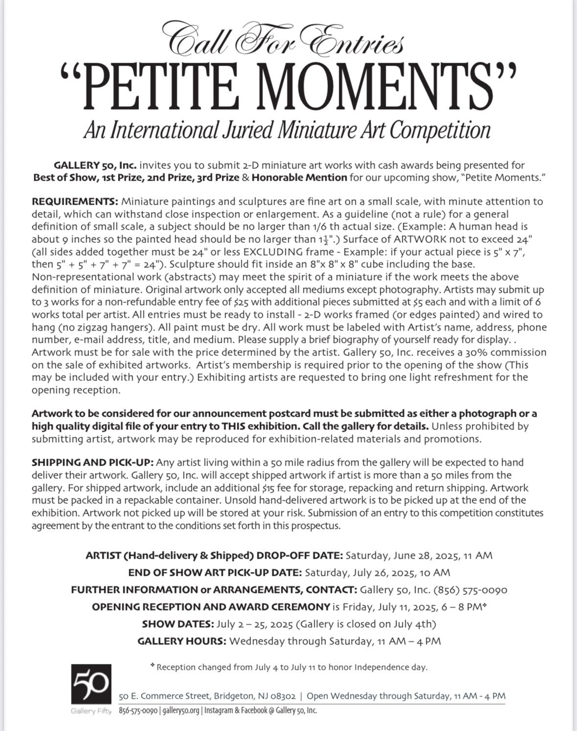 JULY ART OPPORTUNITY @GALLERY 50 FOR MINIATURES EXHIBIT & AWARDS
