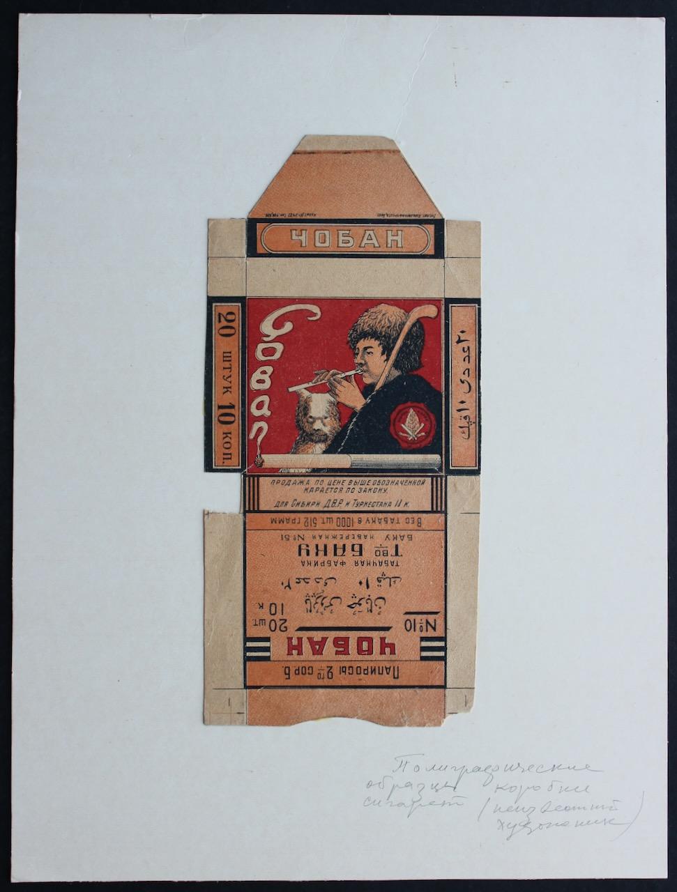 Leningrad State Tobacco Trust. Produced for Mongolia. Leningrad. 3 1/2 x 4 1/2". 1930s.