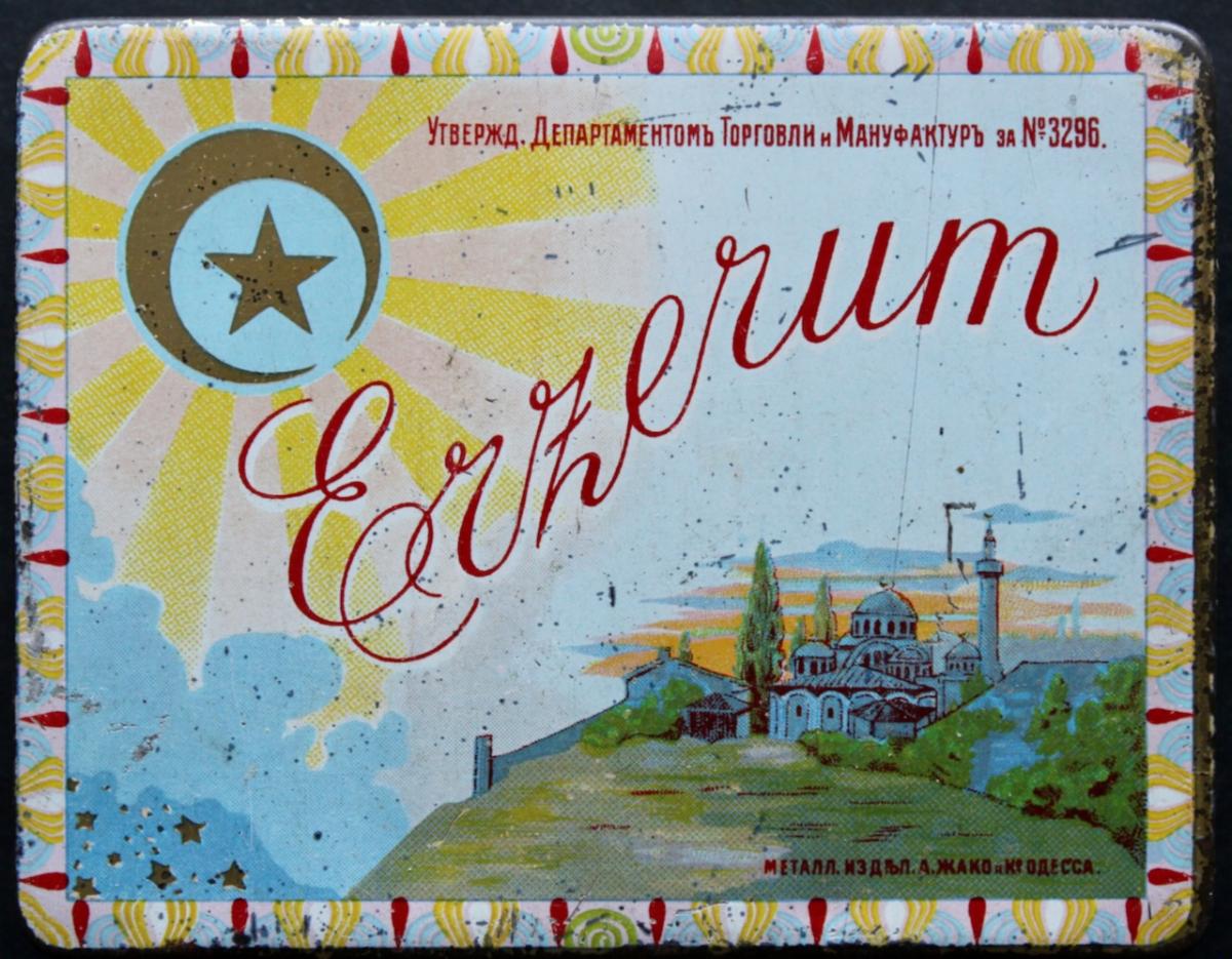 Baku Tobacco Factory. Produced for Siberia and Turkestan. Baku. Attached to board with notes. 9 1/2 x 4 1/4". 1920s.