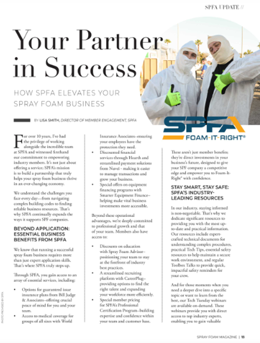 Spray Foam Magazine Article – Your Partner in Success