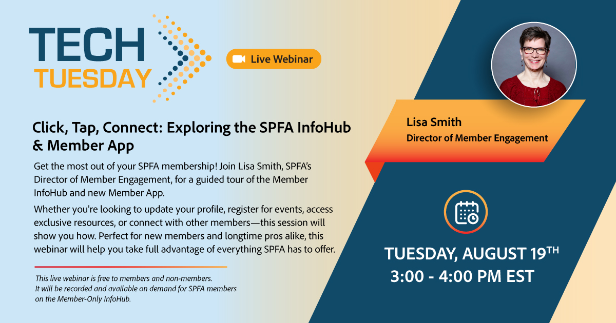 Whether you're looking to update your profile, register for events, access exclusive resources, or connect with other members - this session will show you how. Perfect for new members and longtime pros alike, this webinar will help you take full advantage of everything SPFA has to offer.