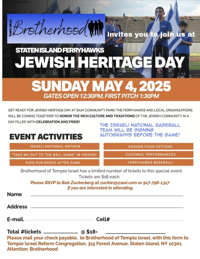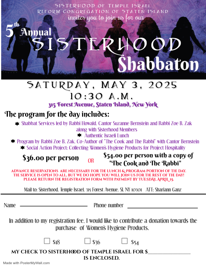 Our E-Bulletin is shared with the entire Temple Israel Family and the Staten Island Community. If you are a local business or community organization and you would like to advertise in our monthly bulletin, please contact the Temple Office at 718-727-2231 or e-mail TICommunication@aol.com.