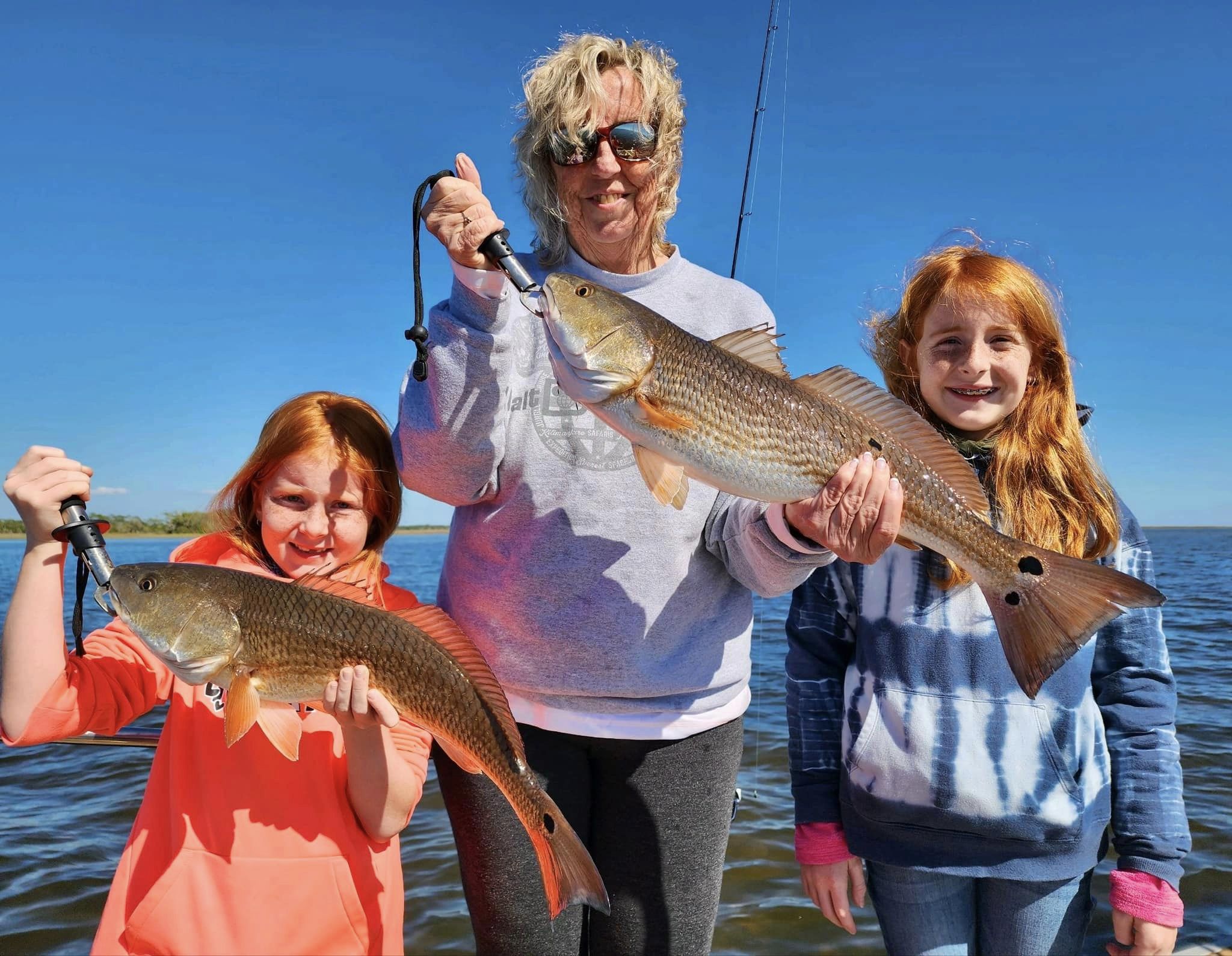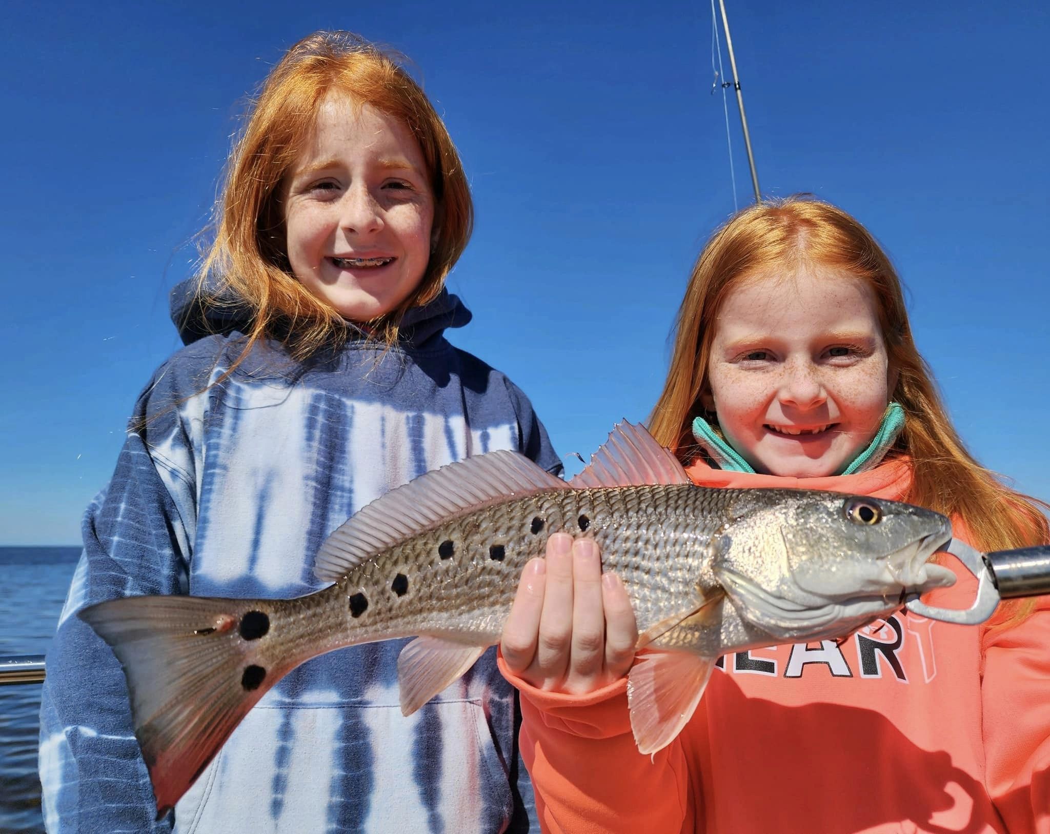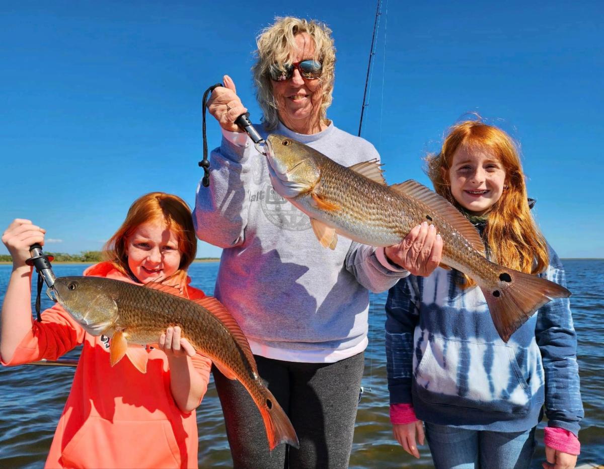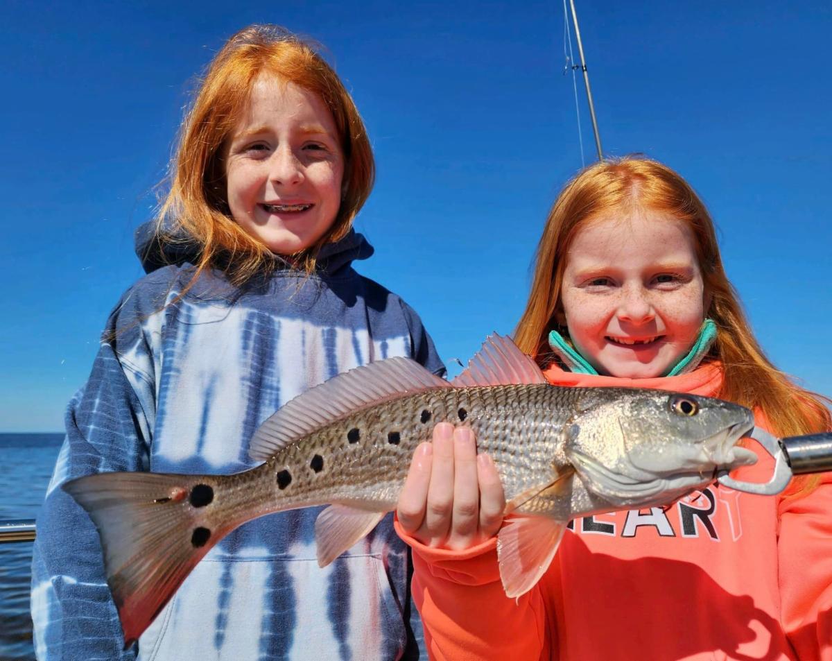 Jessie & Allie caught a perfect redfish with Capt. Randy Harris!