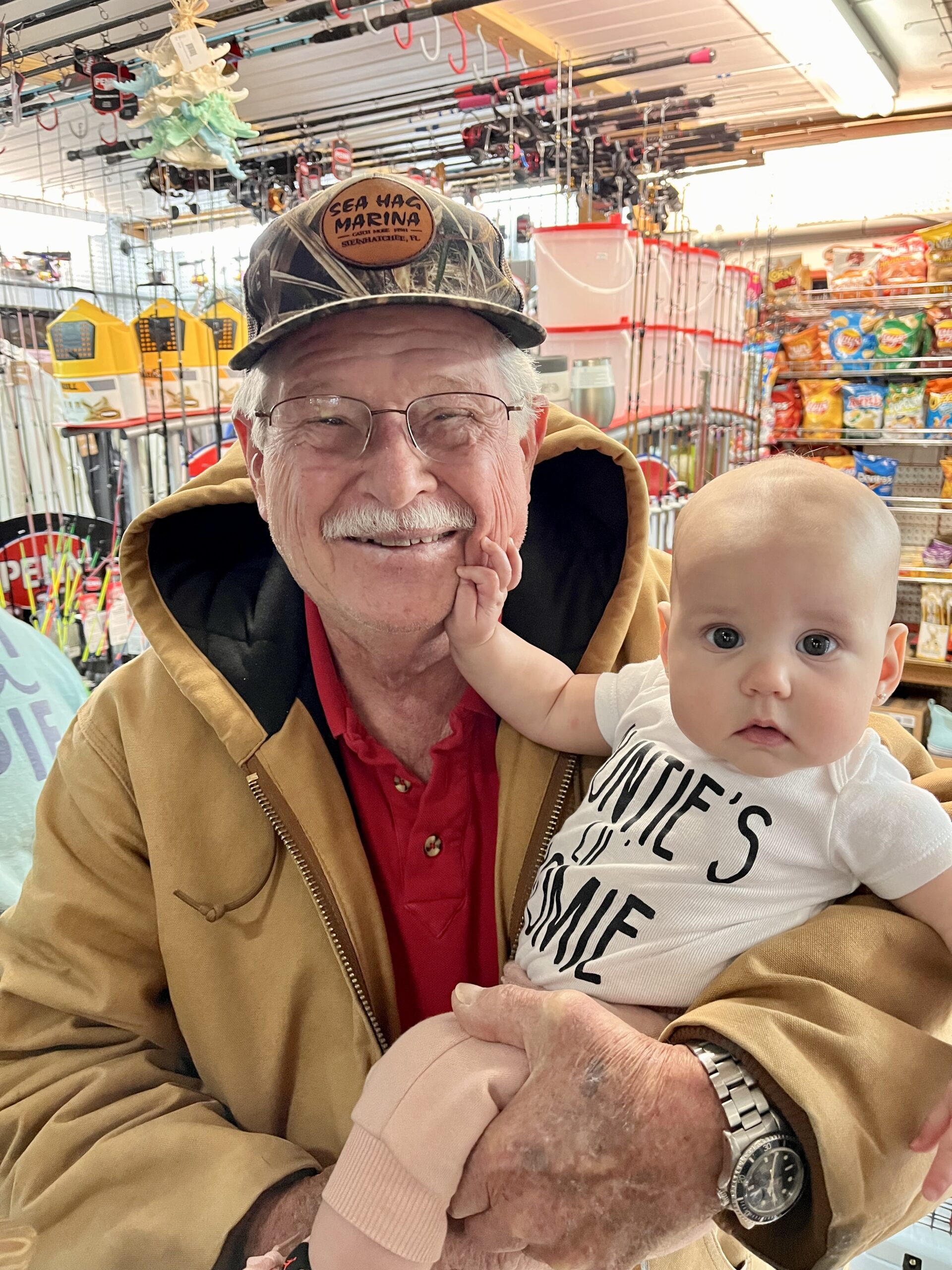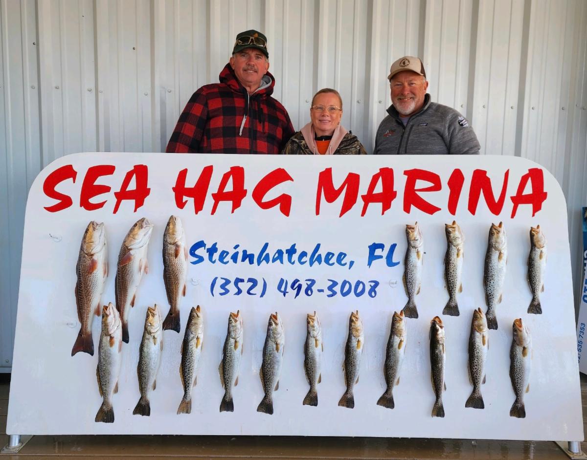 | We are doing something new & fun at the Sea Hag on April 22nd! A Scavenger Hunt! Join us at 12pm, Saturday, April 22nd! Free to participate! | Piapa & baby Lincoln says fishing is great right now | Win an awesome golf cart & support the local food pantry, Sower of the Seed! Purchase your tickets at Sea Hag Marina! | Claire & her grand daughters, Allie & Jessie, had so much fun catching fish with Capt. Randy Harris! | |