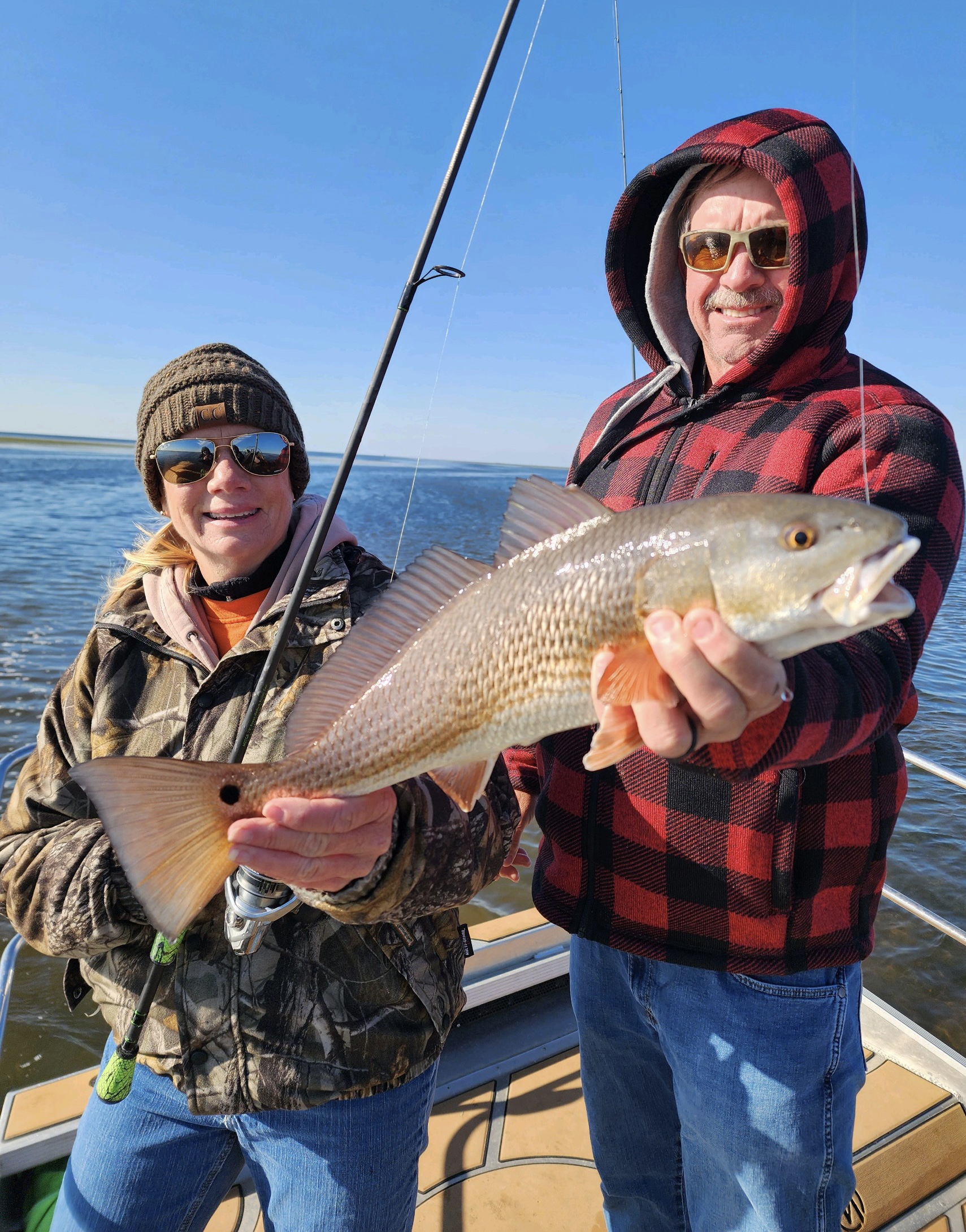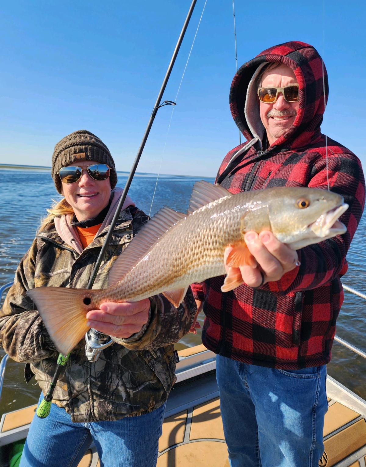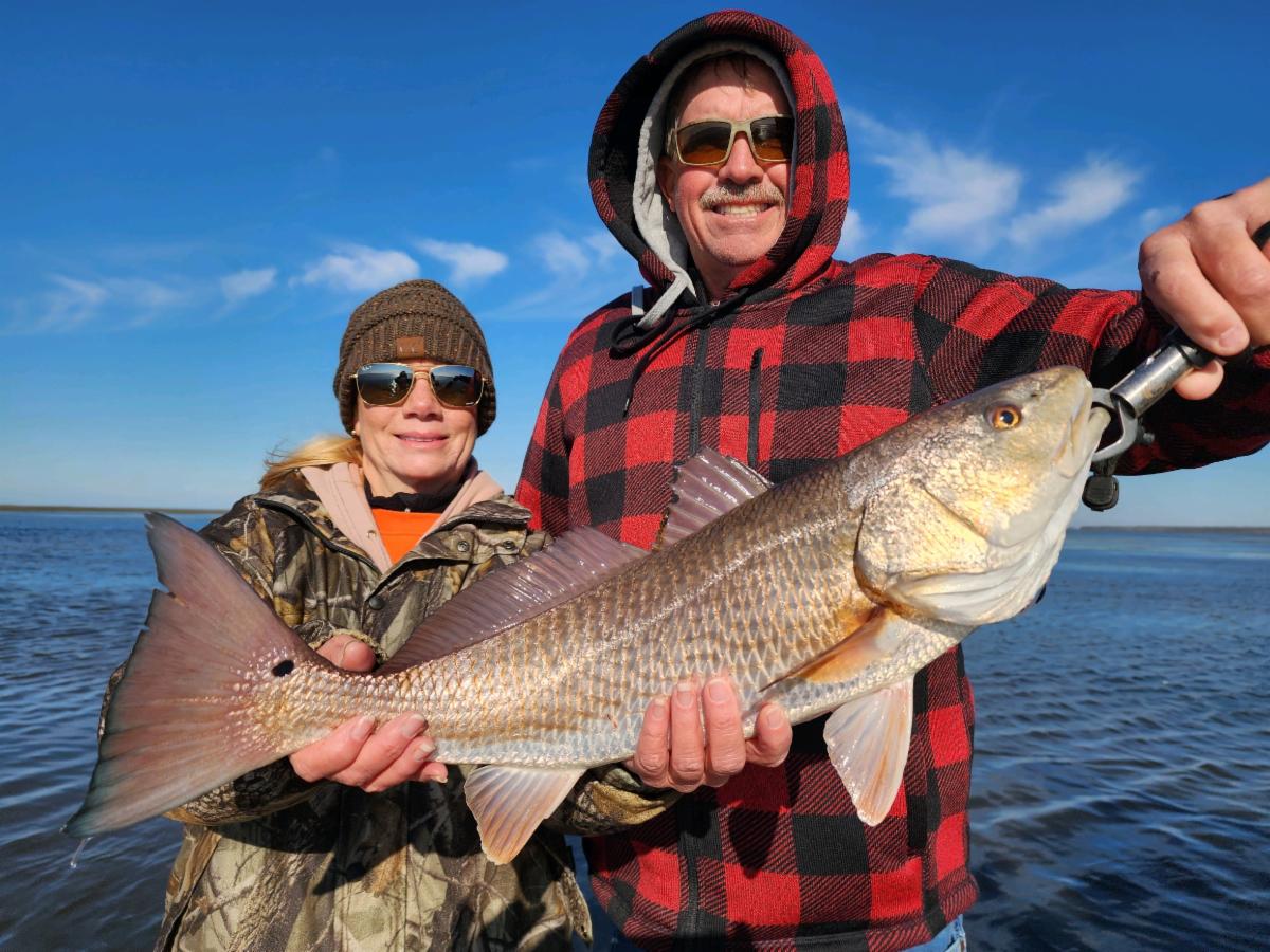 Ricky and Stephanie Griffis reeled in a big ol' redfish while fishing with Capt. Randy Harris.
