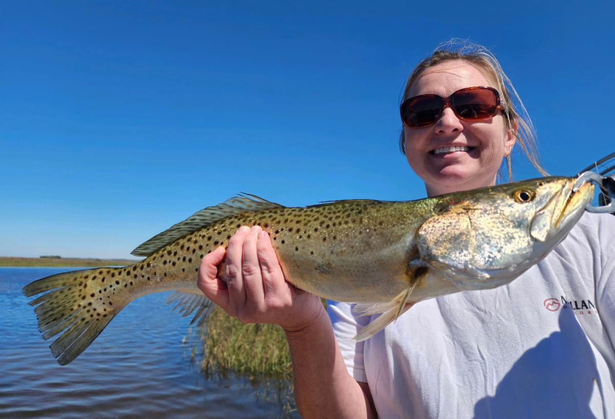 Chris caught trout after trout with Capt. Chris Chico Graham.
