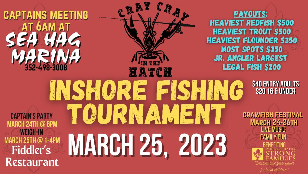 March 25th is the Cray Cray Fishing Tournament held by Fiddlers Restaurant!