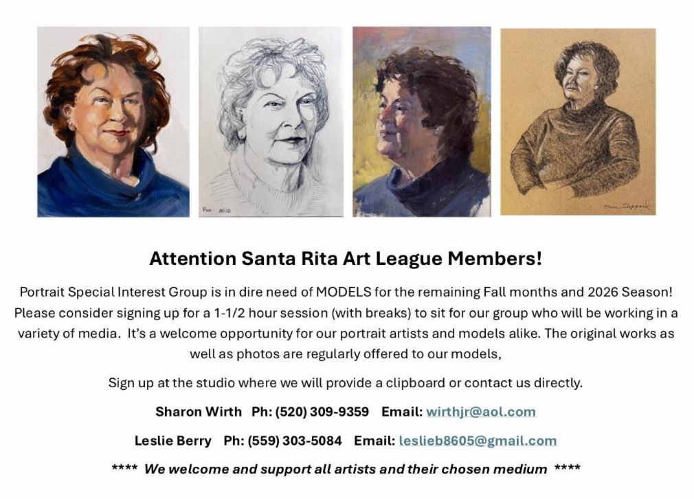 If interested, please send an email with your name, phone number and email address to Nanci Sheppard NanciS@SantaRitaArt.org